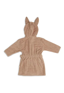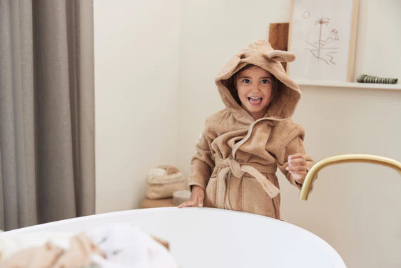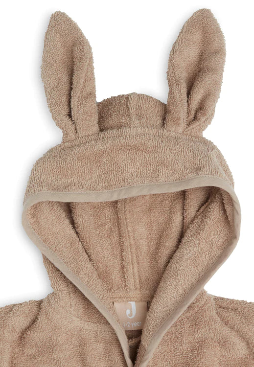 Ein Frottee-Bademantel ist immer praktisch. Und diese Biscuit-Farbe ist einfach nur wunderschön. Der Bademantel ist perfekt nach dem Baden, Duschen oder Schwimmunterricht zu verwenden. Das weiche Frottee nimmt Wasser leicht auf und hält dein Kleines schön warm. Die fröhliche Kapuze mit Ohren trocknet die Haare leicht. Der Bademantel ist auch praktisch, um ihn in den Urlaub oder zum Übernachten mitzunehmen. Der Bademantel ist für Kinder zwischen 3-4 Jahren geeignet. Dies hängt auch davon ab, wie groß dein Kind ist. Der Bademantel hat einen praktischen Druckknopf, um ihn beim Tragen geschlossen zu halten, einen Gummizug im Rücken für den perfekten Sitz und der Gürtel ist am Bademantel befestigt, damit du ihn nicht verlieren kannst. Wusstest du, dass Jollein auch Bademäntel für Kinder im Alter von 1-2 Jahren verkauft? Es gibt nichts Schöneres, als den gleichen Bademantel wie dein Bruder/deine Schwester zu tragen! Der Bademantel ist in den Farben Ash Green, Biscuit, Caramel, Ivory, Jeans Blue, Nougat, Pale Pink und Biscuit erhältlich. Entdecke auch unsere gestreiften Bademäntel!