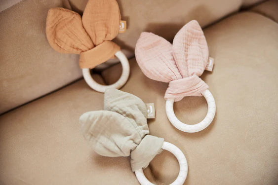 Die weichen Hasenohren knistern und wecken so die Neugierde deines Babys und sorgen für mehr Spielspaß. Außerdem ist dieser Beißring vollständig BPA-frei, dein Baby kann also bedenkenlos daran lutschen und kauen. Verschaffe deinem Kind etwas Linderung und Spaß mit unserem niedlichen, sicheren Beißring. Der Bunny Ears Beißring ist in Olive Green, Wild Rose und Moonstone erhältlich.
