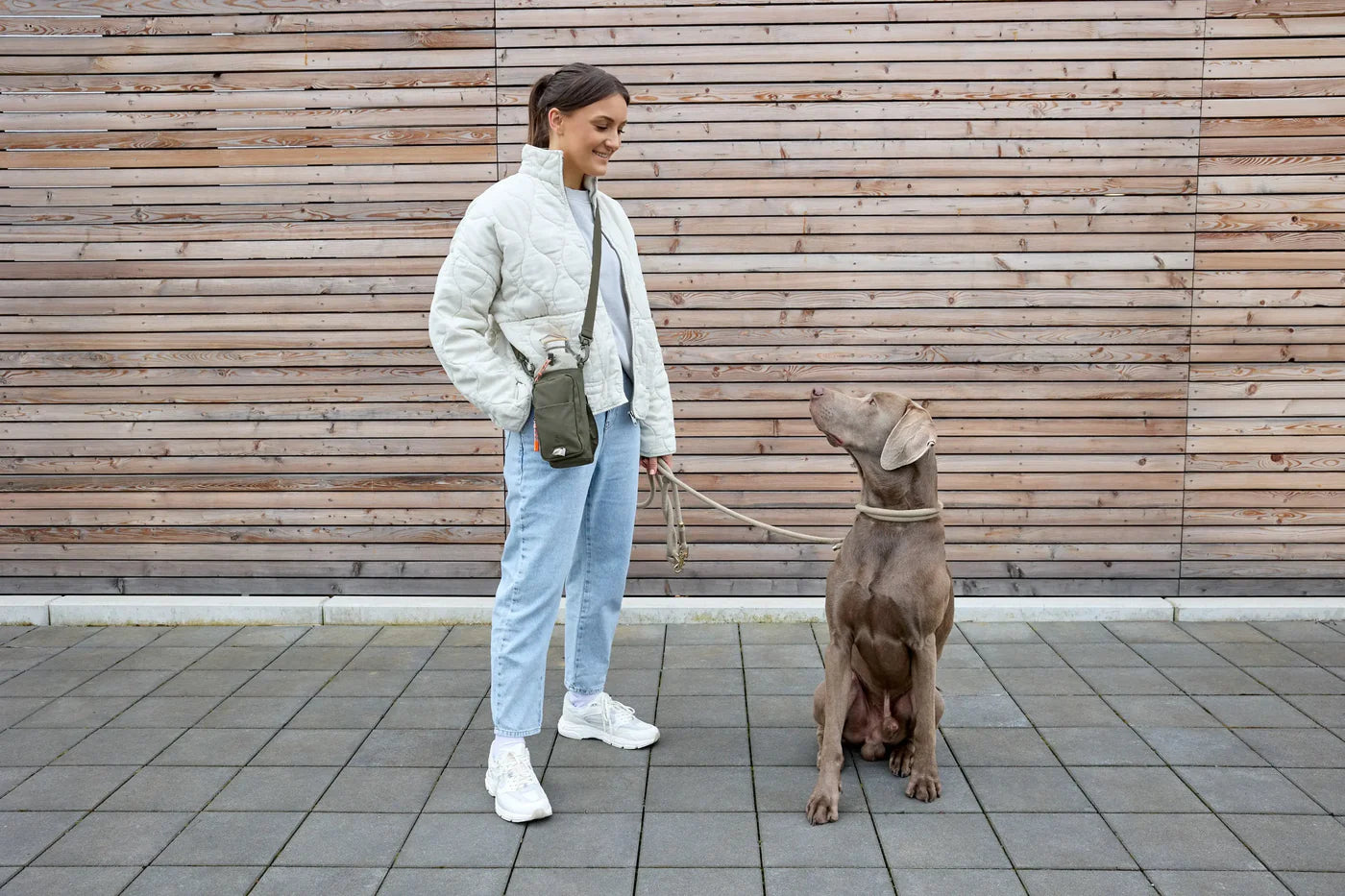Die funktionale und stylische Flaschen- und Leckerlitasche wurde gemeinsam mit Hundeexpert:innen entwickelt.