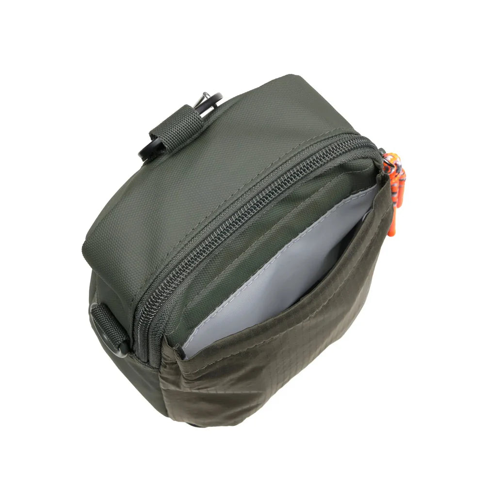 Durch den abnehmbaren, längenverstellbaren Schultergurt lässt er sich über die Schulter oder als Crossbody-Tasche tragen.