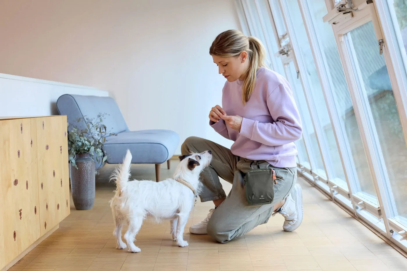 Der praktische Leckerlibeutel Greta in Dark Olive von PALOPA ist ideal für die Hundeschule, das eigenständige Training oder die täglichen Spaziergänge.