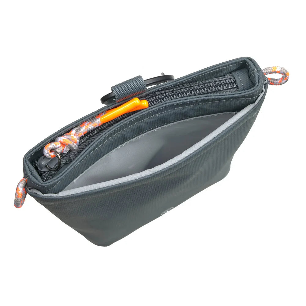 Mithilfe des stylischen Karabinerhakens kann er in einem Handgriff am Gürtel befestigt werden.