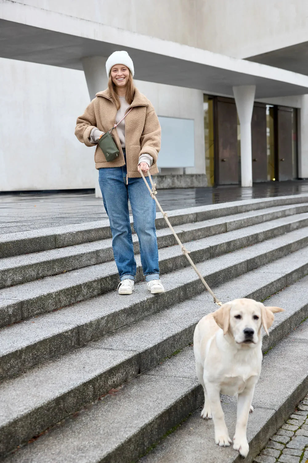 Der Leckerlibeutel ist zum Umhängen geeignet.