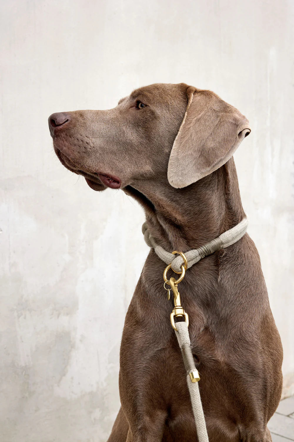 Das robuste und strapazierfähige Zug-Stopp-Halsband aus Leinen wurde in liebevoller Handarbeit in Deutschland gefertigt.