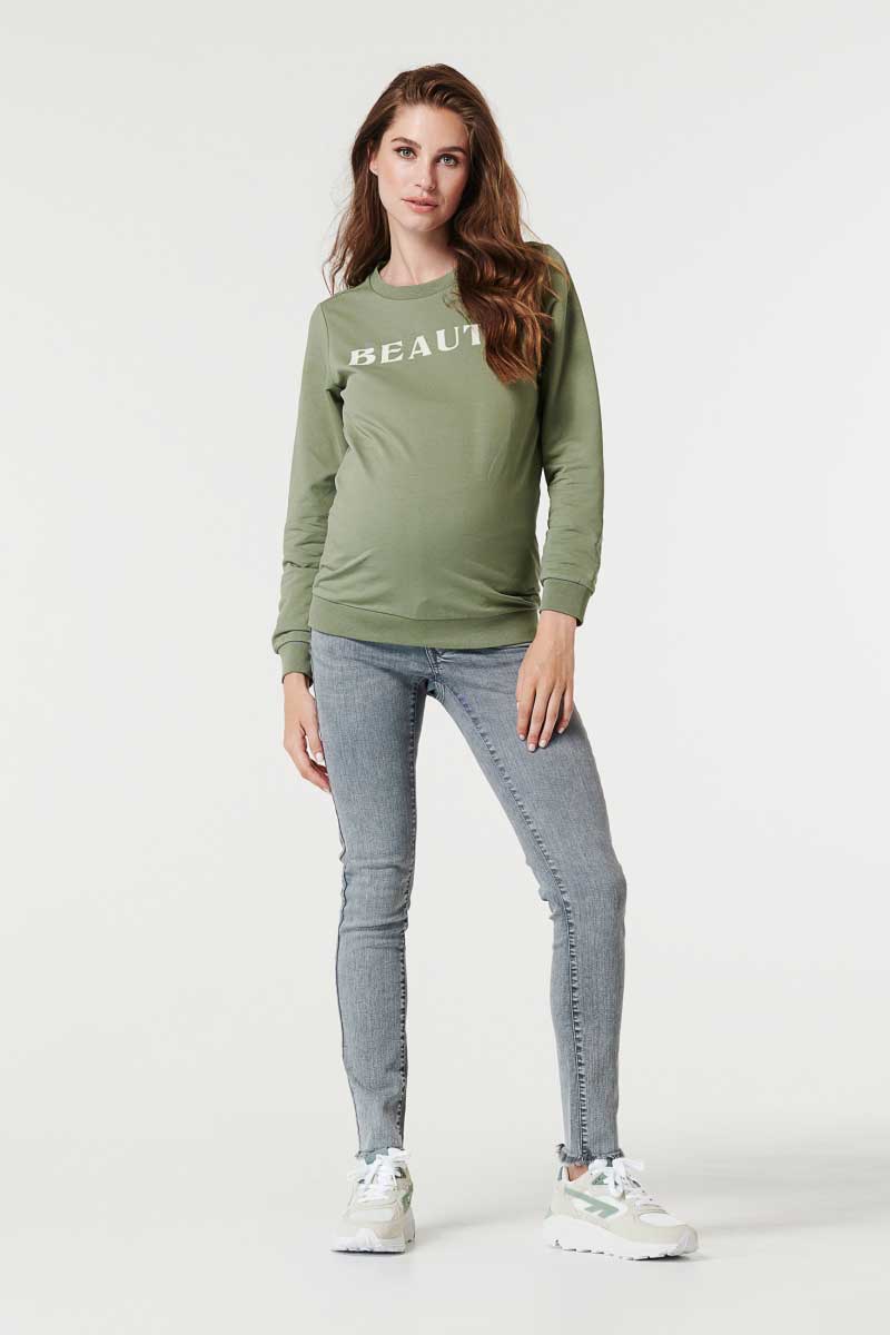 Sweater weather? Dann hole Dir diesen wunderschönen & bequemen Umstandsmode - Pullover von Supermom aus Deinem Kleiderschrank - den Du zuvor natürlich hier bei Deinem erfahrenen Händler für Schwangerschaftsmode erworben hast! Der Pullover hat eine schöne bequeme Passform und ein schönes Zitat auf der Vorderseite. Der weiche Stretchstoff ist wirklich toll zu tragen! Kombinieren Sie den Pullover zum Beispiel mit einer unserer Umstands - Jeans oder einer Umstands-Leggings!